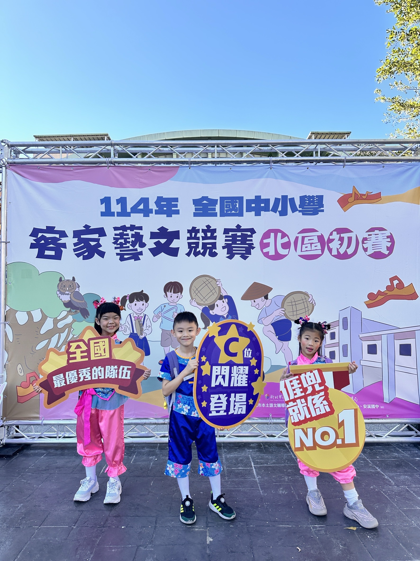 本校學生劉士榕、黃立昕、林禹序參加114年全國中小學客家藝文競賽,榮獲北區特優(指導老師劉玉英)。